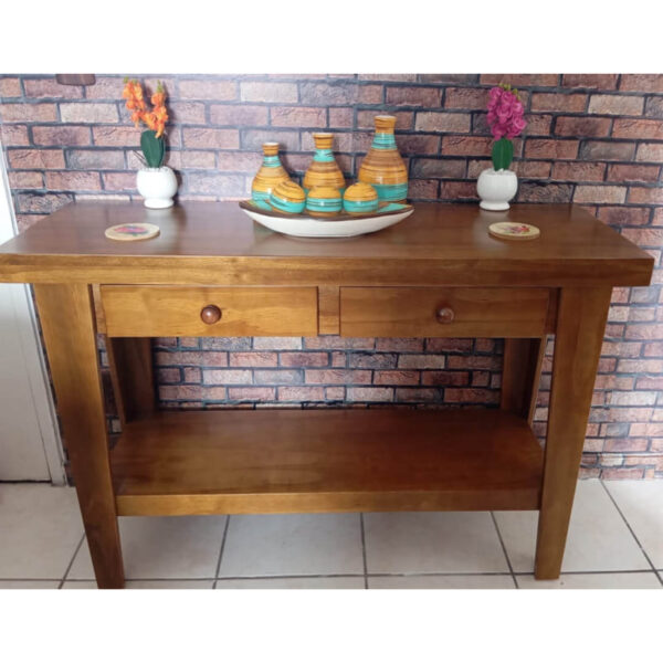 Produzido em madeira de alta qualidade, oferece estrutura robusta e 2 gavetas espaçosas para guardar chaves, documentos e pequenos objetos do dia a dia. Com 120 cm de comprimento, traz equilíbrio entre funcionalidade e estilo, encaixando-se bem em diversos ambientes.