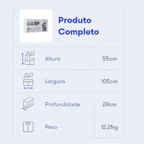 | Dimensões | 28 × 105 × 55 cm |
