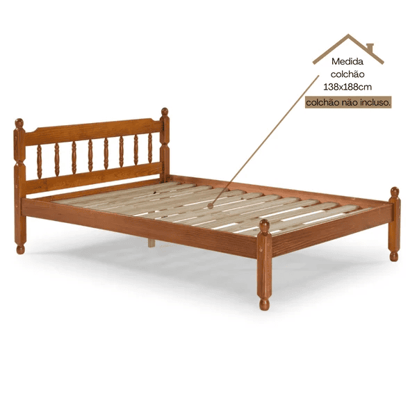 Transforme seu quarto com a Cama Casal Torneado Mel Fosco Ref. 5177 e desfrute de um ambiente mais elegante, acolhedor e confortável.