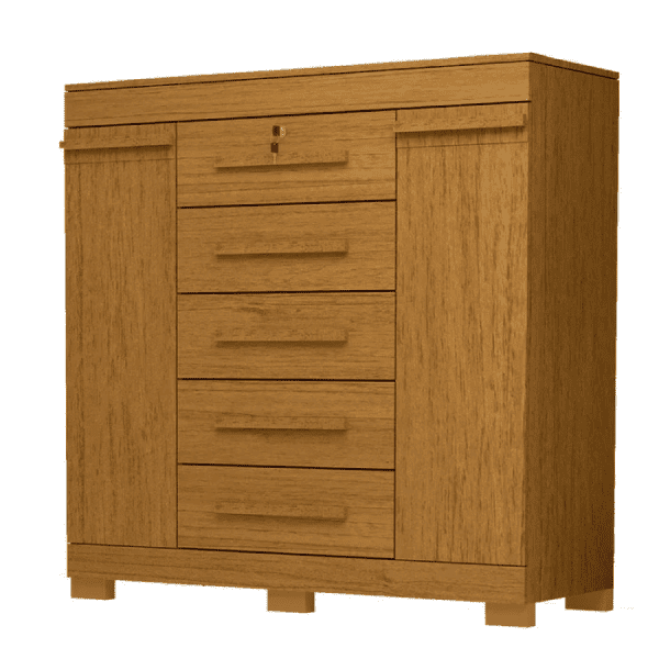 Produzida em MDF de alta qualidade, a Cômoda Diana oferece excelente durabilidade e resistência. Suas 5 gavetas amplas proporcionam espaço perfeito para guardar roupas, acessórios e itens do dia a dia de forma prática e organizada. Além disso, as corrediças metálicas garantem maior suavidade e firmeza na abertura e fechamento das gavetas.