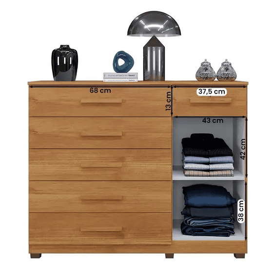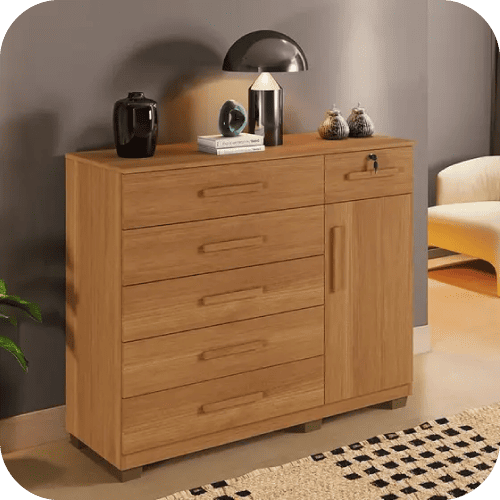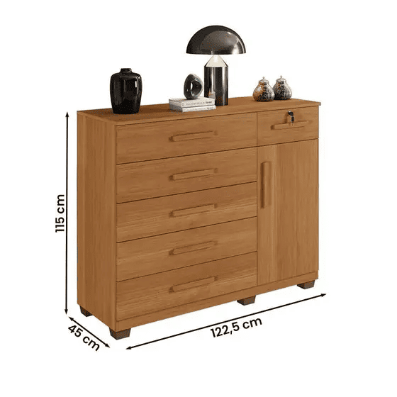 A Cômoda Milão 114 Cinamomo é a escolha ideal para quem busca organização com estilo. Produzida em MDP de alta resistência, o móvel possui 6 gavetas espaçosas e 1 porta lateral, garantindo praticidade para acomodar roupas, acessórios e objetos pessoais.