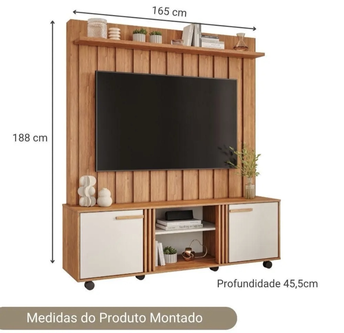 O Home para TV 160 cm Olinda Permobili, produzido em 100% MDF, é a escolha ideal para quem busca elegância, durabilidade e funcionalidade em um único móvel. Com porta basculante, amplo espaço para eletrônicos e acabamento moderno em Cinamomo/Off White, ele transforma sua sala em um ambiente sofisticado e organizado. Seu design vertical aproveita o espaço com eficiência, trazendo 188 cm de altura, 165 cm de largura e 45,5 cm de profundidade, perfeito para TVs de até 60 e decorações contemporâneas. Uma solução completa para renovar sua sala com estilo, resistência e excelente custo-benefício.