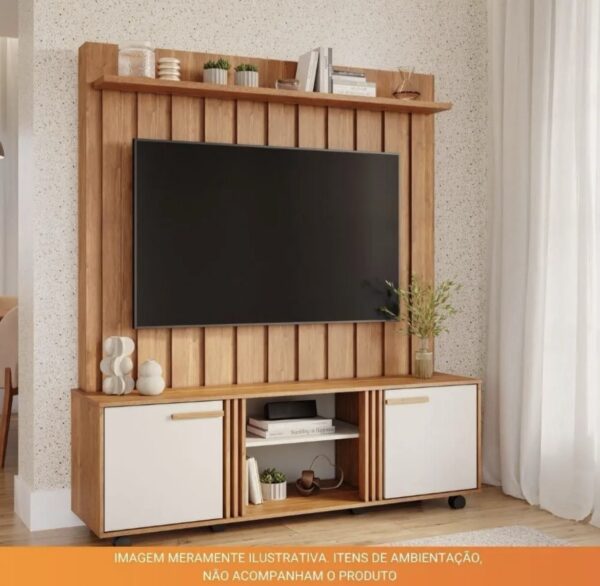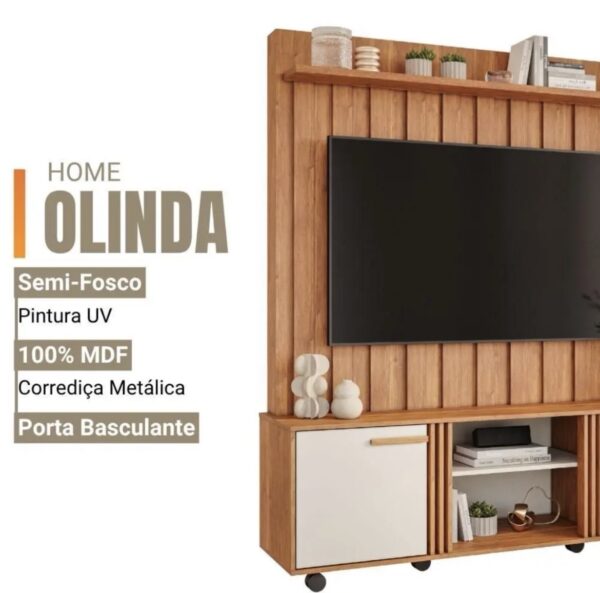 Home Para Tv 160 Cm 100% Mdf Porta Basculante Olinda Permobili Cinamomo/Off White
