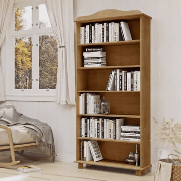 O Livreiro Rubi Cor Freijó Ref. 6661 é produzido 100% em Madeira Maciça, na elegante cor Freijó. Possui 5 prateleiras em madeira maciça, oferecendo amplo espaço para acomodar livros, objetos decorativos e itens de uso diário. O detalhe no chapéu e os pés torneados ressaltam o design rústico do produto, trazendo charme e personalidade ao ambiente. Versátil, é uma peça coringa para casa ou escritório, com a qualidade, durabilidade e exclusividade que apenas a madeira maciça e seus veios naturais proporcionam.