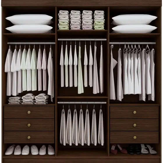 Com design moderno e sofisticado, o Roupeiro Colibri é perfeito para quem busca organização sem abrir mão do estilo. Com 6 portas e amplo espaço interno, conta com prateleiras, cabideiros e compartimentos bem distribuídos para roupas, calçados e acessórios. A combinação castanho com off white valoriza a decoração e traz elegância ao ambiente, tornando o quarto mais aconchegante e funcional.